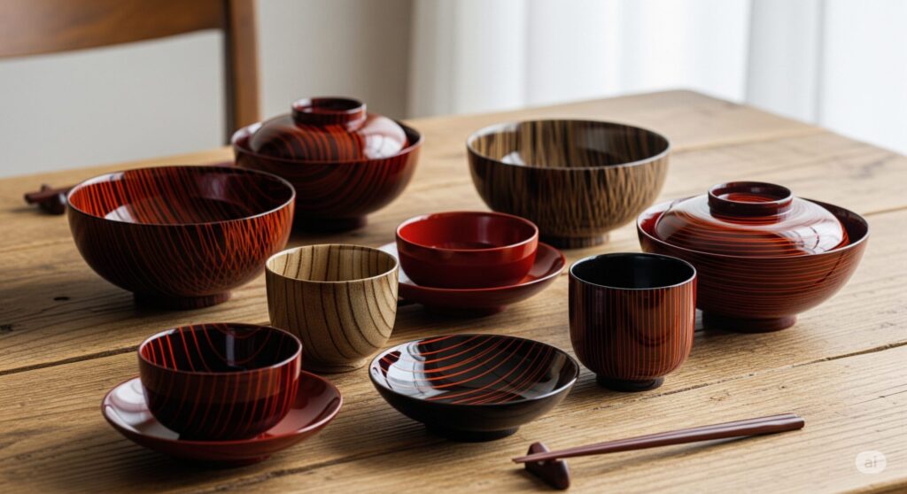 ですから私も、今の若い人たちにこそ、漆器の良さを知ってほしいと思っています。「特別な日の器」ではなく、朝のコーヒーや、普段の食事で気軽に使えるものであってほしい。プラスチックや陶器にはない、口当たりの柔らかさや、手に持った時の軽さ、温かさを知れば、きっと毎日が少し豊かになるはずです。和にも洋にも映える、モダンなデザインの漆器も手掛ける。