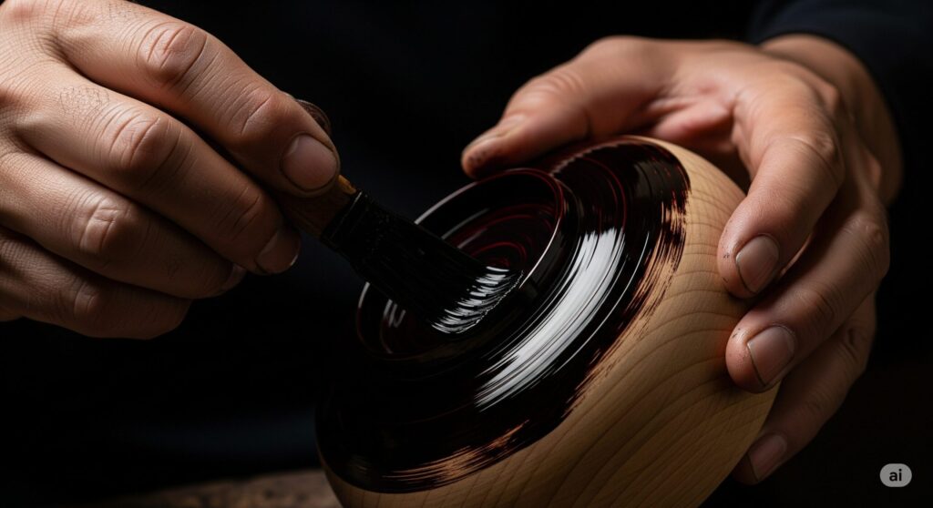 ――鳴子漆器には、木目を生かした「木地呂塗(きじろぬり)」や、マーブル模様が特徴的な「竜文塗(りゅうもんぬり)」など、様々な技法がありますね。佐々木さんが特に大切にされているのは、どのような点でしょうか。