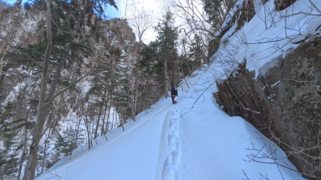 北海道上川町・層雲峡温泉街にある紅葉谷(もみじだに)は、冬になると深い雪に包まれ、通常の散策とはまったく違う白銀の森へと変わります。