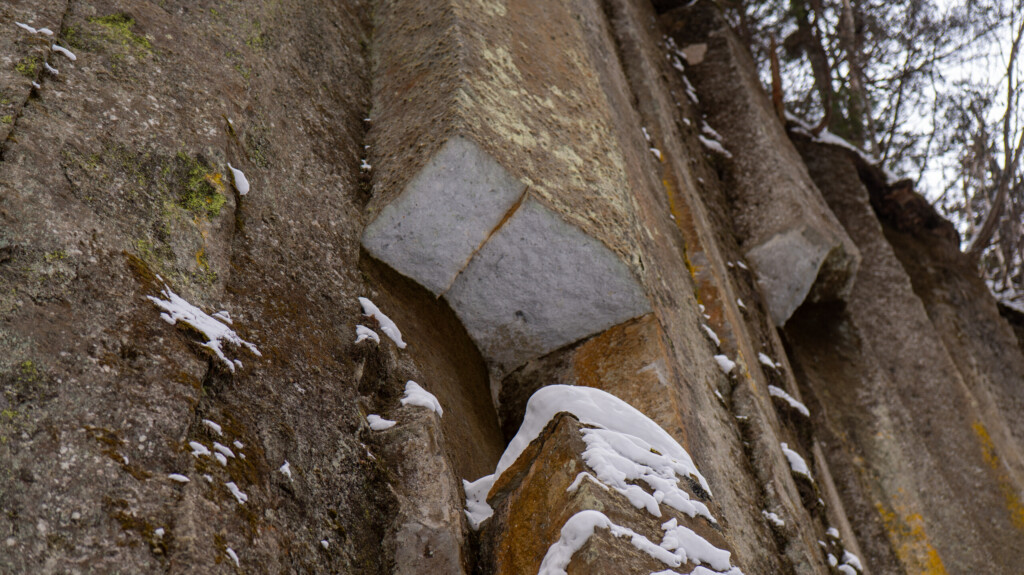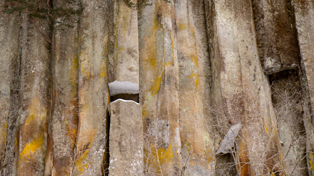 層雲峡の見どころは氷だけではありません。岩肌には、柱のように規則的に割れた柱状節理(ちゅうじょうせつり)が見られます。これは、火山活動による地形の特徴として知られており、層雲峡らしい景観の核になっています。