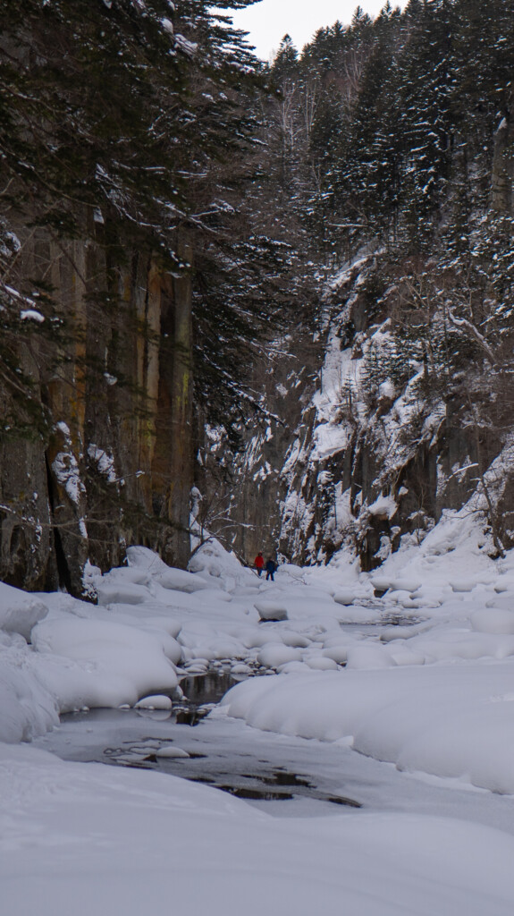 そのため、「層雲峡でアクティ体験をしたいけれど、難しい冬スポーツは不安」という方にも向いています。移動そのものが体験になり、歩くほどに景色の迫力が増していくのが、このコースの魅力です。